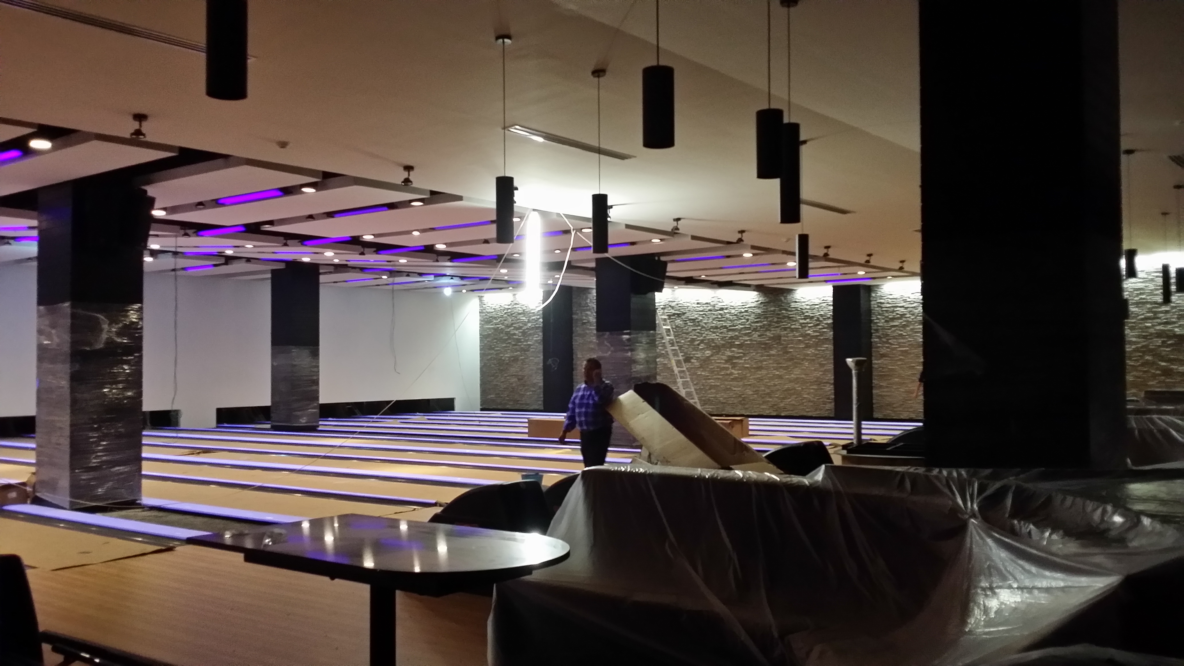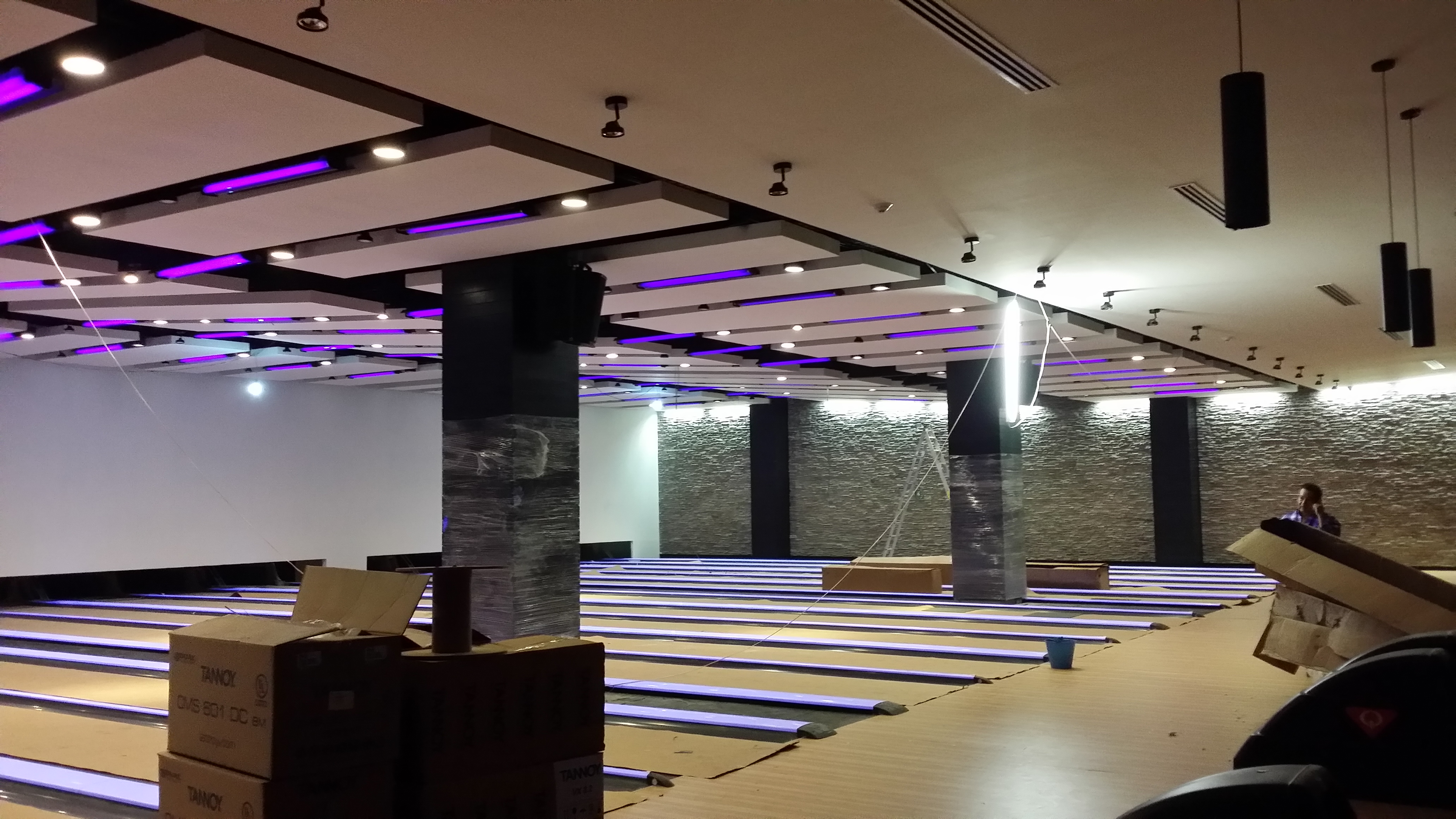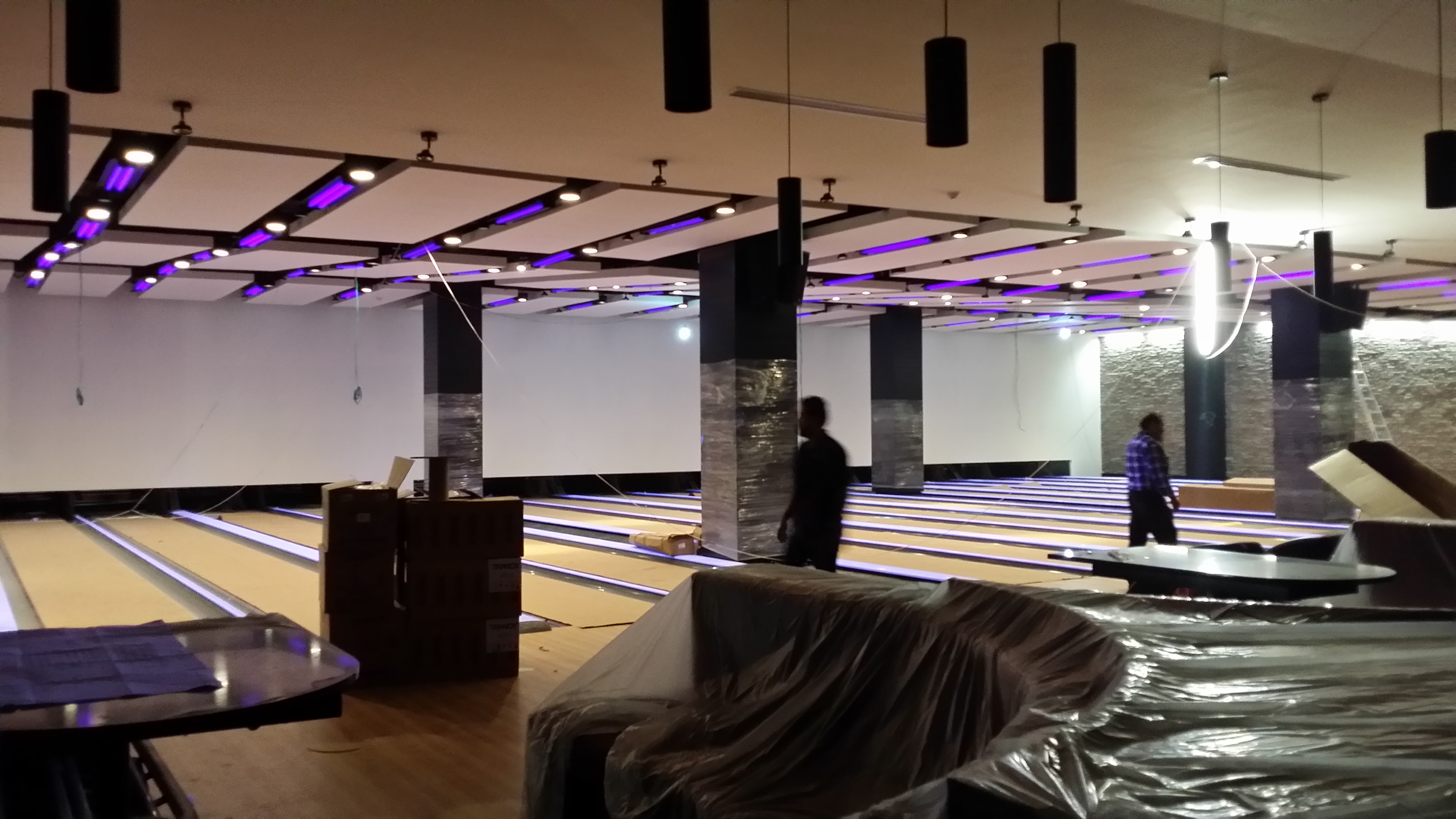 Instalación de Luminarias interiores. El proyecto comprende la instalación delas luminarias del interior de los bolos del complejo de Cinemex en Villahermosa, Tabasco.