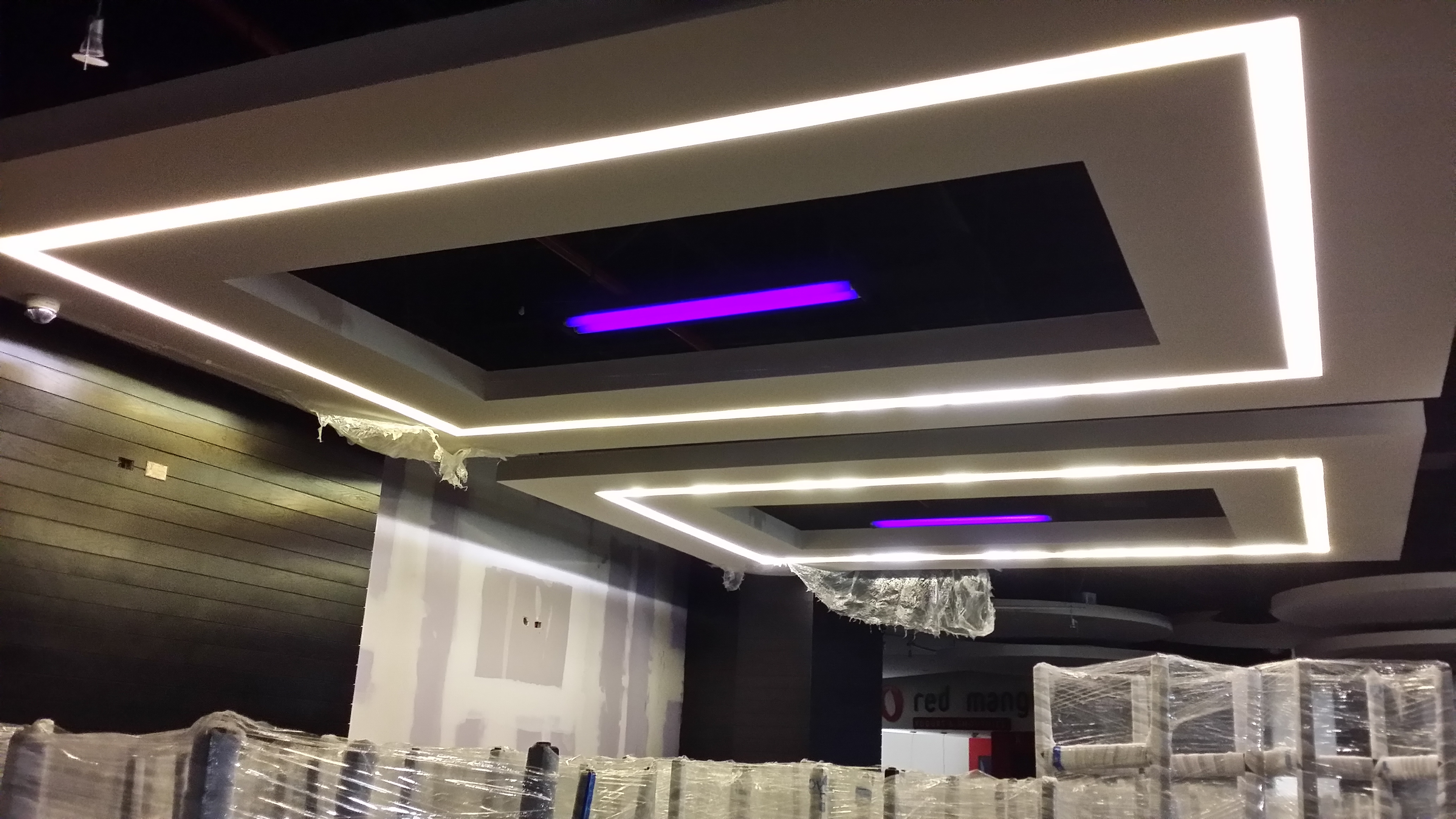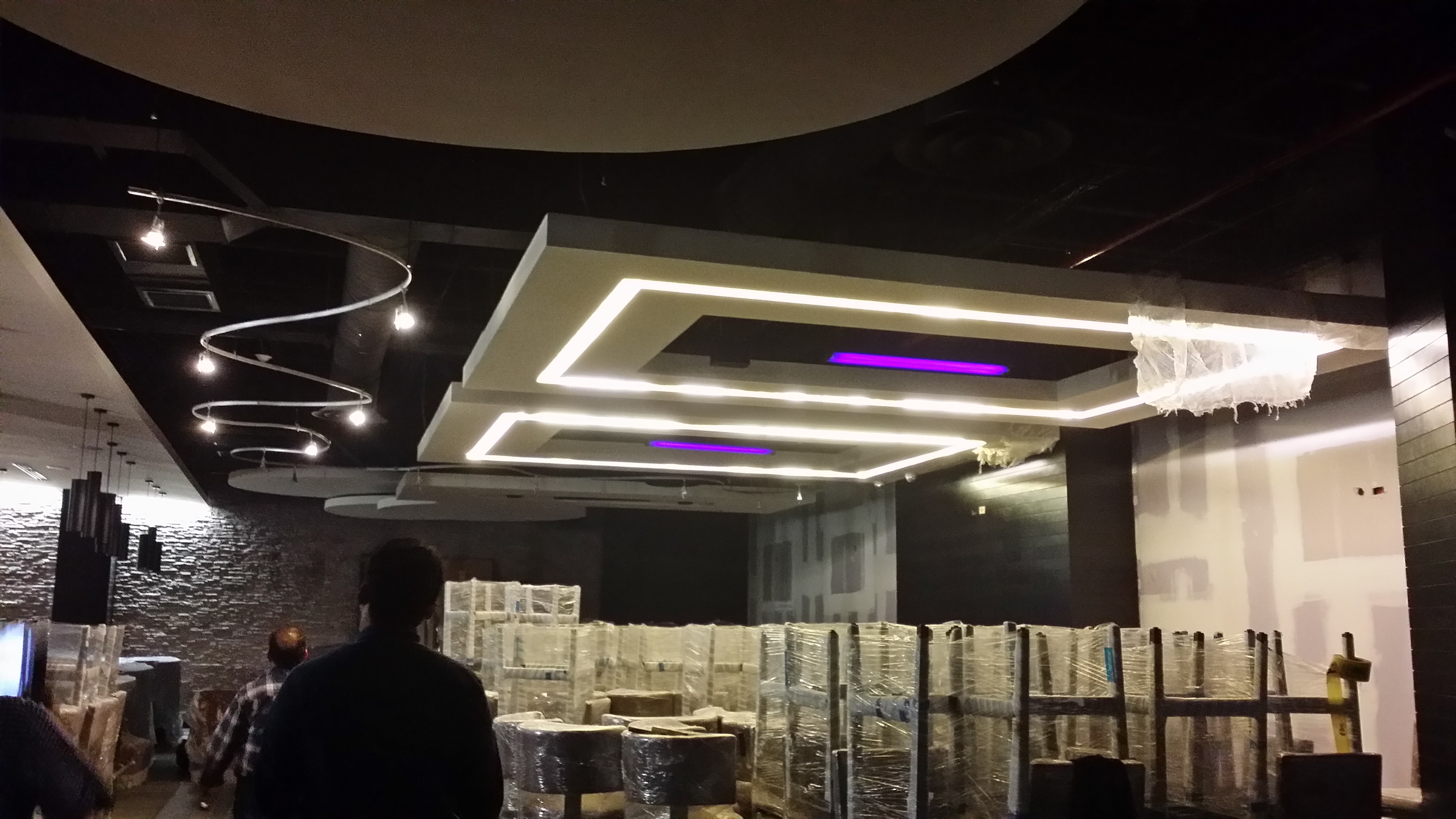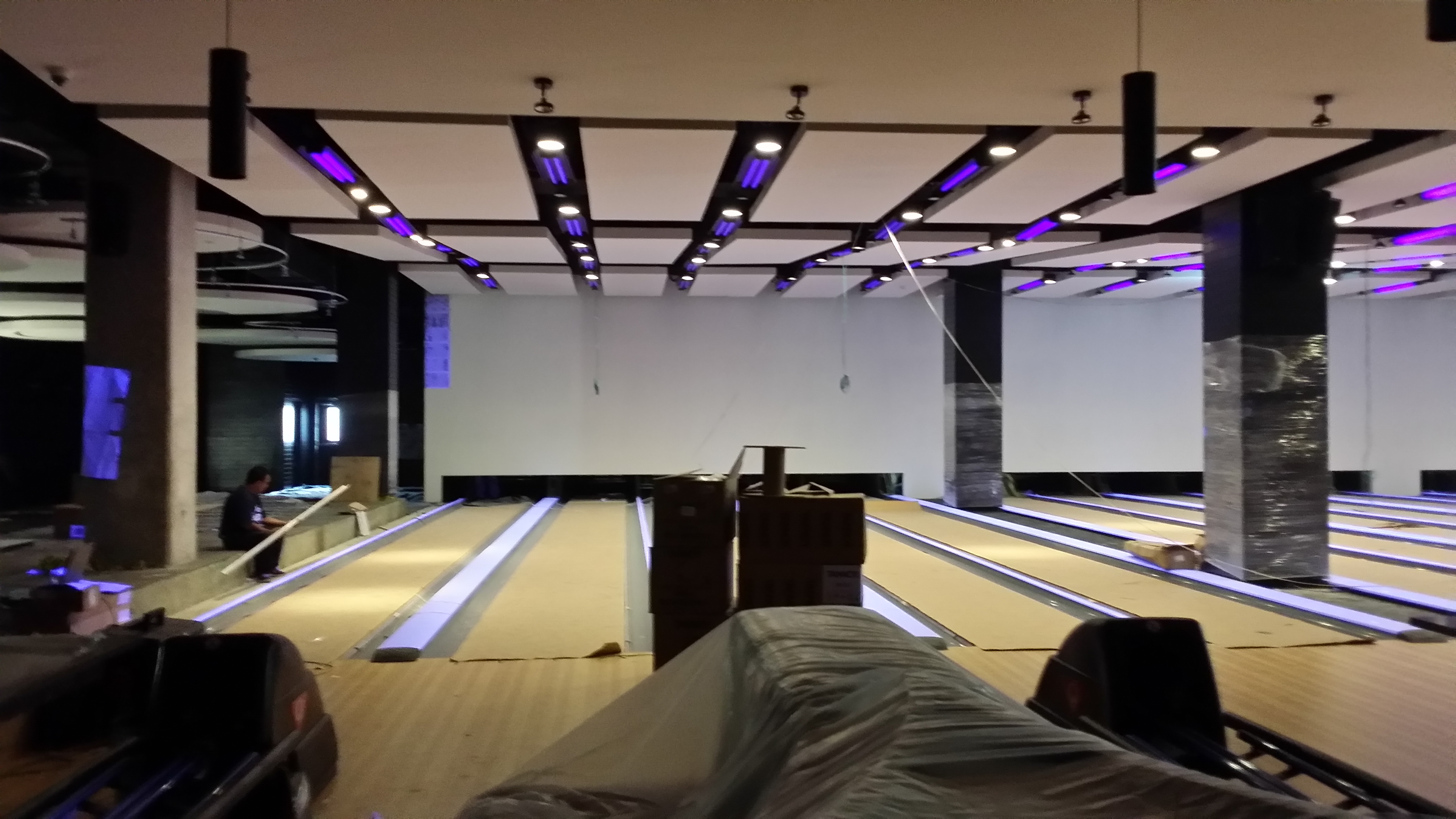 Instalación de Luminarias interiores. El proyecto comprende la instalación delas luminarias del interior de los bolos del complejo de Cinemex en Villahermosa, Tabasco.